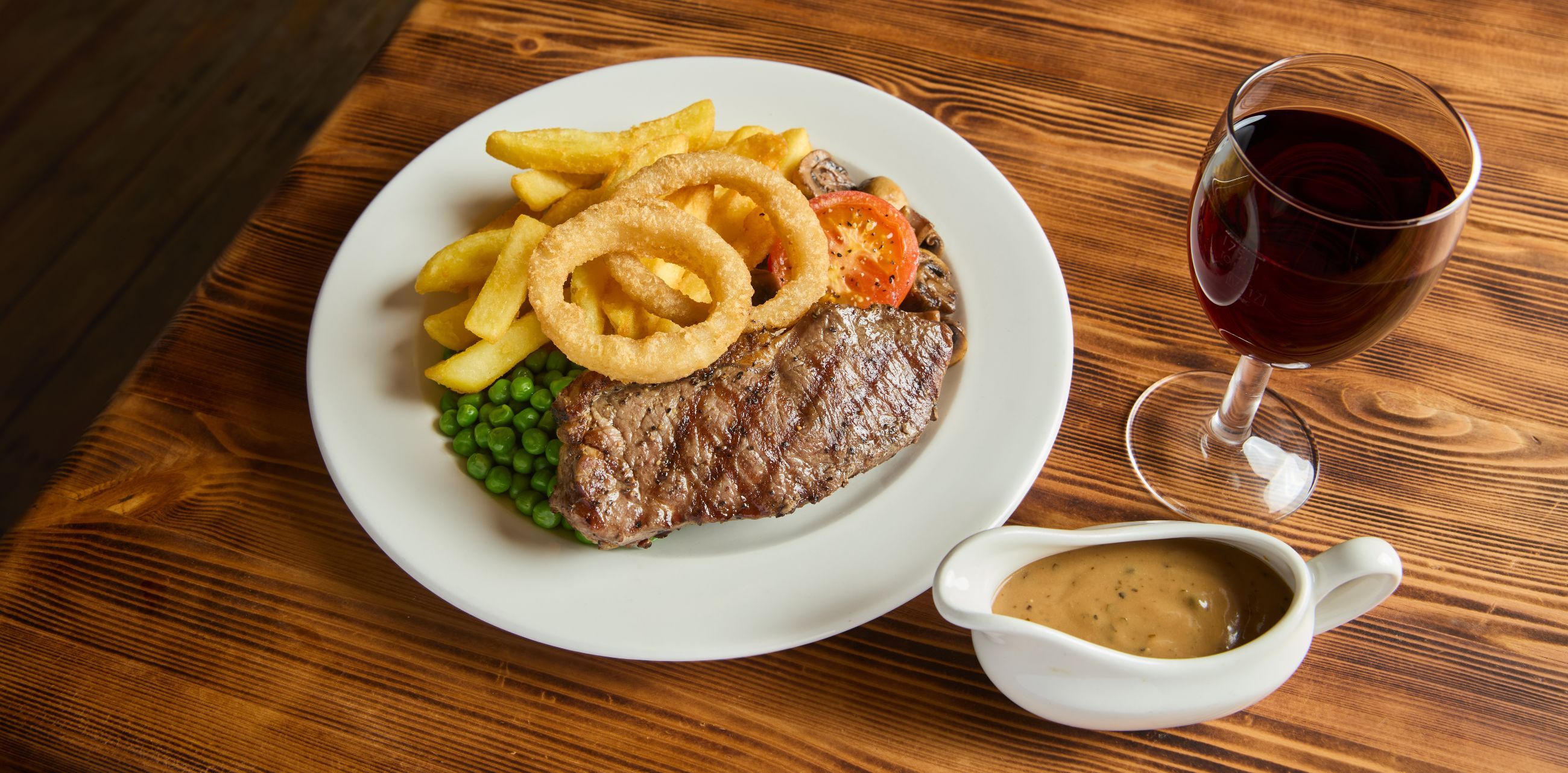 Our pub steak menu at The William Webb Ellis is packed with delicious cuts of steak just dripping with flavour. Whether you’re in the mood for rump, sirloin or gammon, you’ll receive a delicious slice of flavour alongside generous helpings of grilled tomato, button mushrooms, garden peas, beer-battered onion rings and satisfying chunky chips. Add in a fiery serving of peppercorn sauce and you’ve got a steak night to remember.